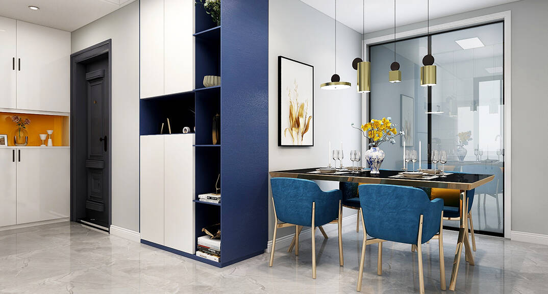 膠州機場公寓118㎡三室一廳餐廳現(xiàn)代風格裝修案例效果圖