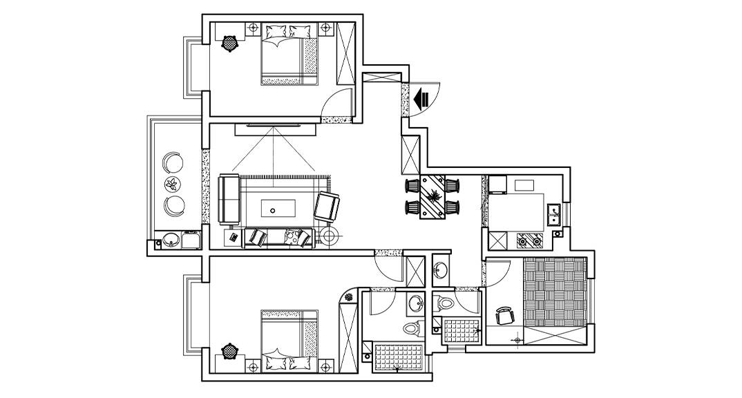 膠州機場公寓118㎡三室一廳現(xiàn)代風格裝修戶型設(shè)計圖