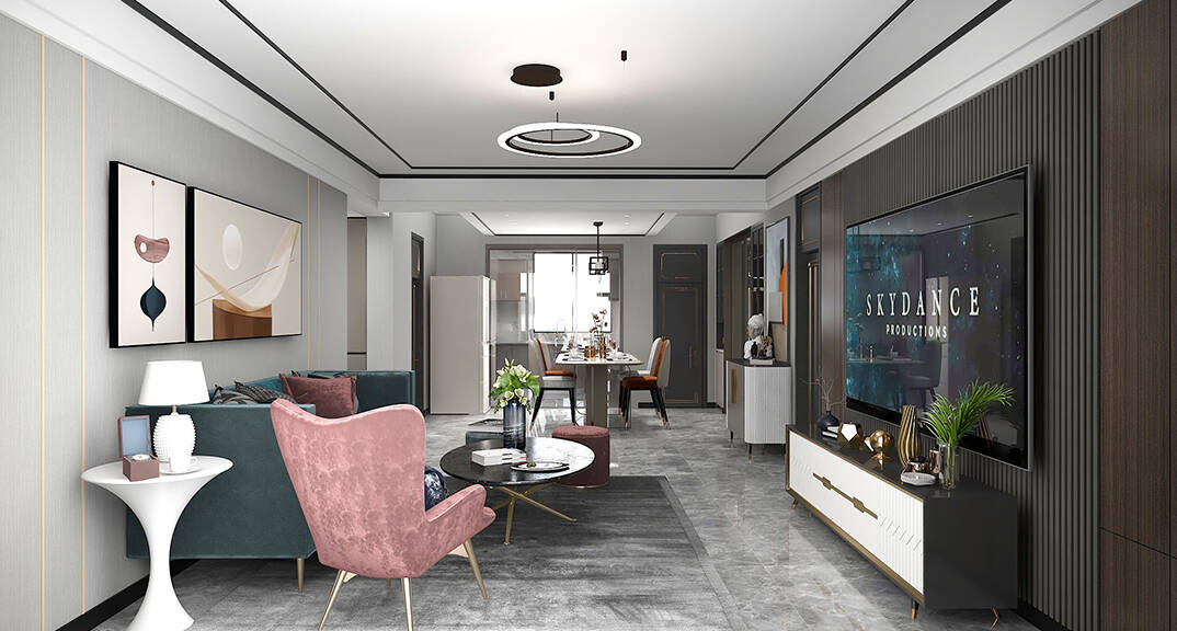 膠州機(jī)場(chǎng)公寓138㎡三室一廳二衛(wèi)客廳客廳現(xiàn)代簡(jiǎn)約風(fēng)格裝修案例效果圖