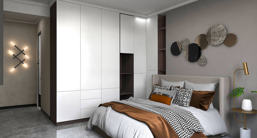 膠州機(jī)場(chǎng)公寓138㎡三室一廳二衛(wèi)臥室現(xiàn)代簡(jiǎn)約風(fēng)格裝修案例效果圖