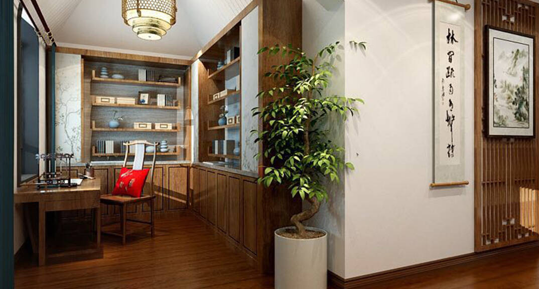海川泓久山墅635㎡別墅書房新中式風(fēng)格裝修案例效果圖