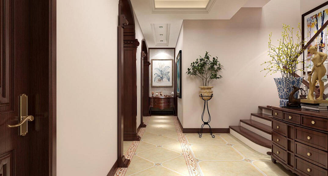 港中旅·海泉灣320㎡別墅樓梯樓道美式風(fēng)格裝修案例效果圖