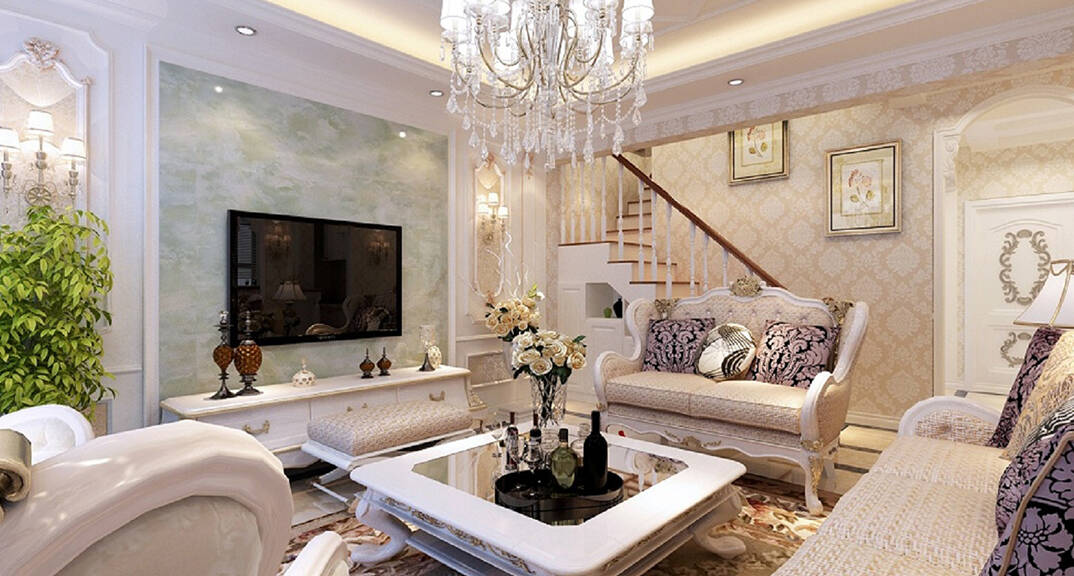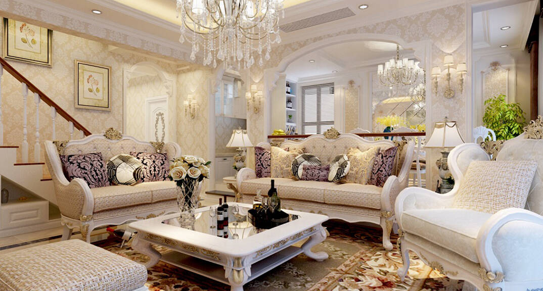 中海臨安府160m2別墅上疊一層客廳沙發(fā)法式風(fēng)格裝修案例效果圖