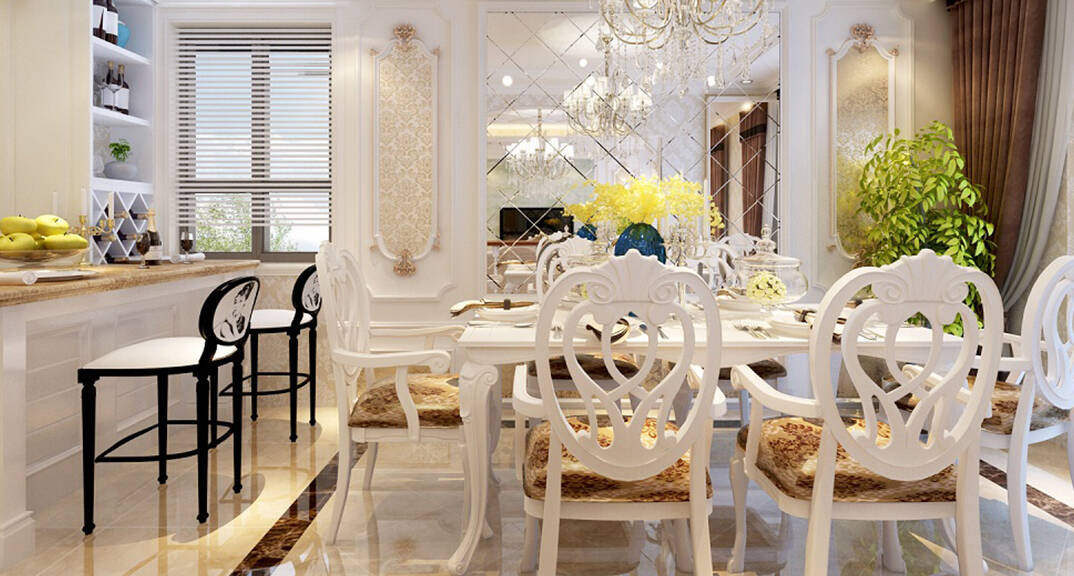 中海臨安府160m2別墅上疊一層餐廳法式風(fēng)格裝修案例效果圖