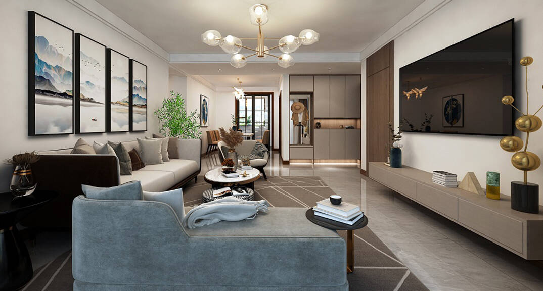 青鋼小鎮(zhèn)150㎡四室一廳客廳新中式風(fēng)格裝修效果圖