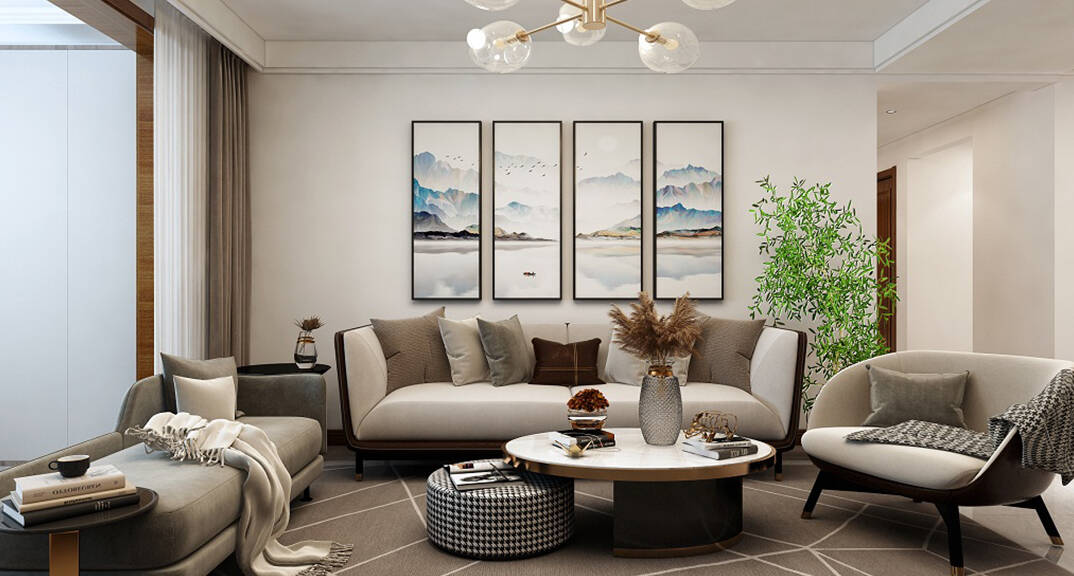 青鋼小鎮(zhèn)150㎡四室一廳客廳沙發(fā)新中式風(fēng)格裝修效果圖