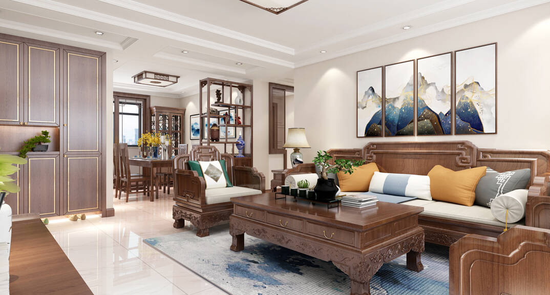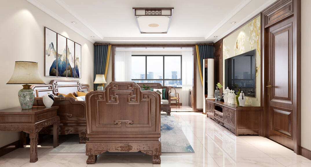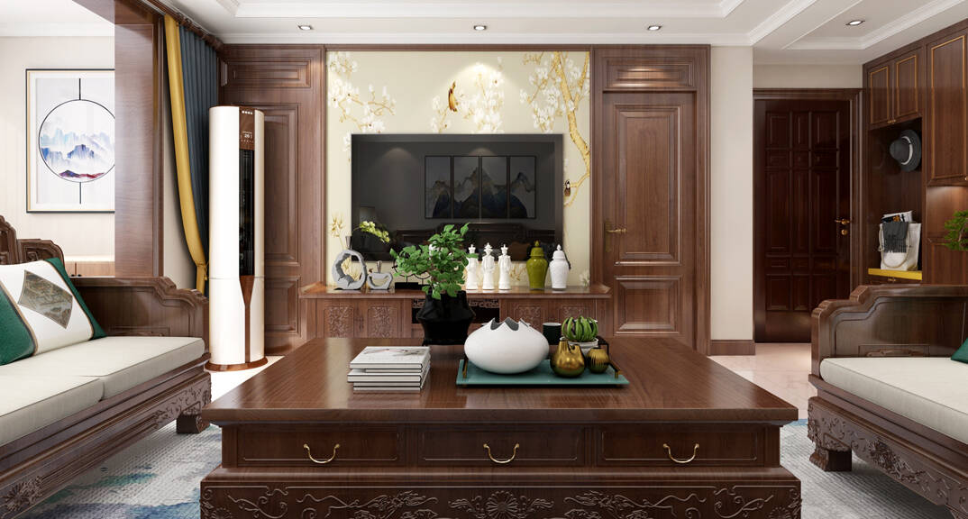 青鋼小鎮(zhèn)140㎡四室一廳新中式風(fēng)格客廳裝修效果圖