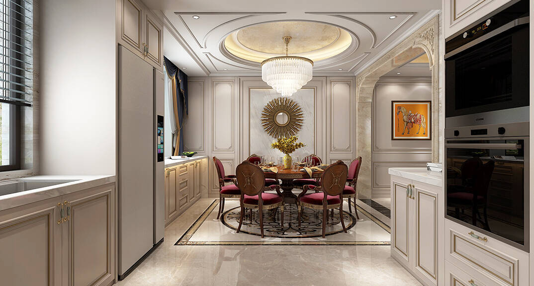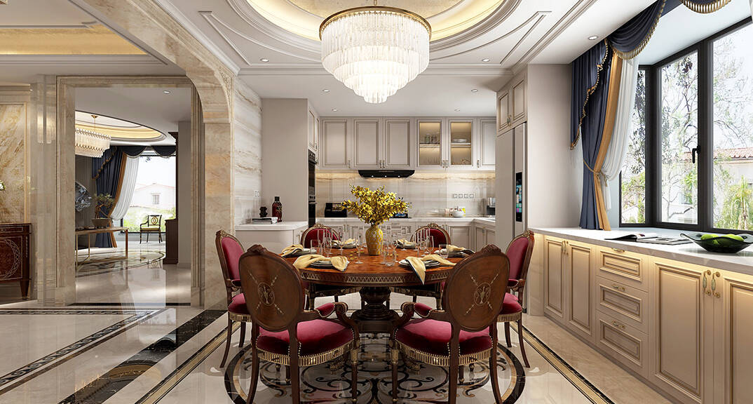 闞濟(jì)浪大公海岸296平別墅簡(jiǎn)歐風(fēng)格裝修效果圖-廚房餐廳