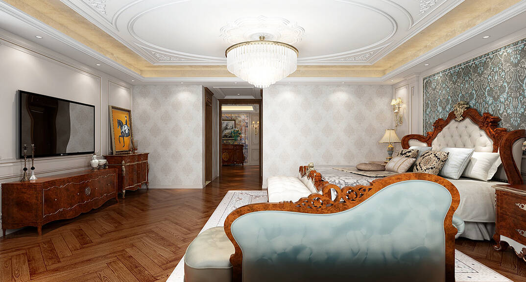闞濟(jì)浪大公海岸296平別墅簡(jiǎn)歐風(fēng)格裝修效果圖-二樓主臥