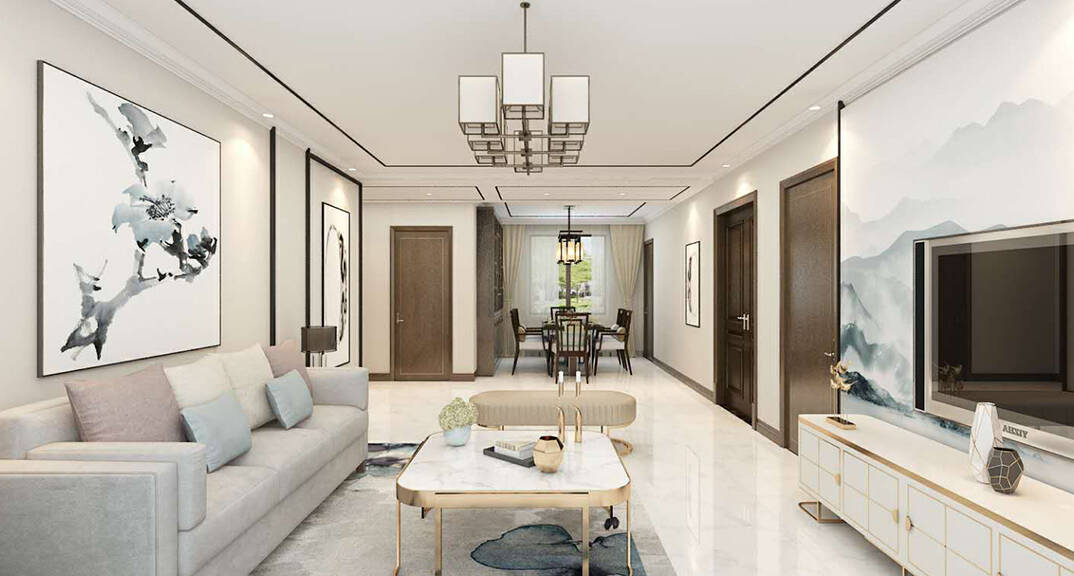 本案整體以現(xiàn)代中式風(fēng)格為主,既有現(xiàn)代風(fēng)格簡(jiǎn)約、明朗的線條,又有中國(guó)傳統(tǒng)內(nèi)涵與韻味。墻面大面積使用暖色烘托整體氛圍,融洽中式與現(xiàn)代簡(jiǎn)約兩種風(fēng)格??臻g更寬闊舒適玄關(guān)收納、玄關(guān)與干區(qū)相結(jié)合,既解放的外衛(wèi)的空間客廳電視背景是一面裝飾柜,豐富了空間,增加了收納和儲(chǔ)物,美觀又實(shí)用。