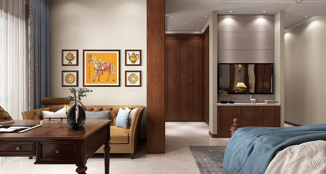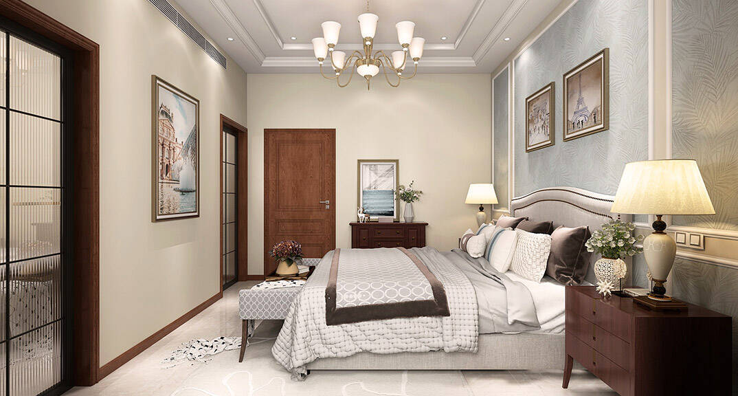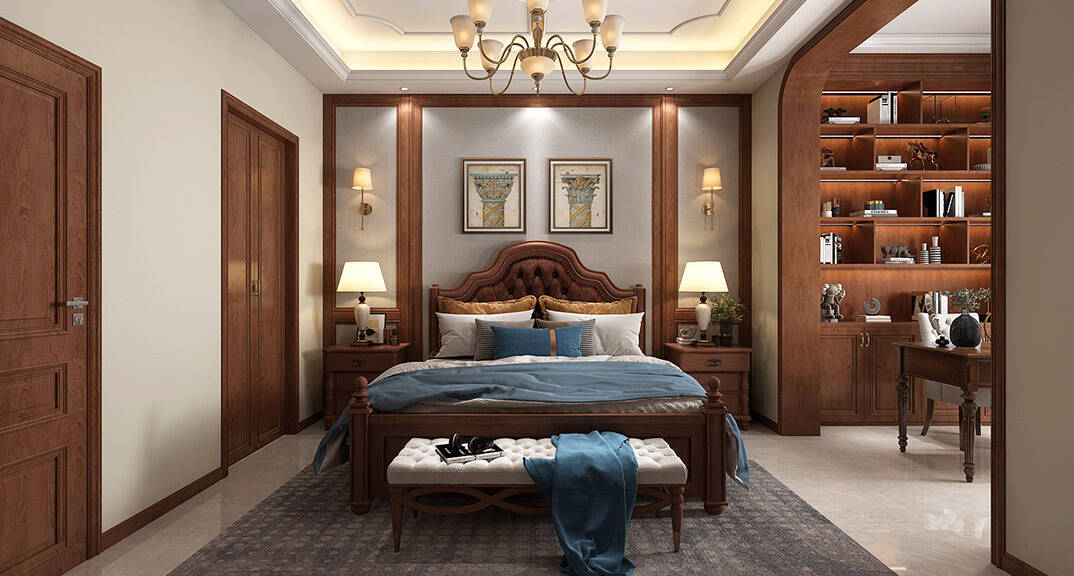 闞濟浪長水山莊238平別墅歐式風格二層主臥裝修效果圖
