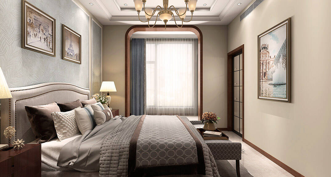 闞濟浪長水山莊238平別墅歐式風格三樓主臥裝修效果圖