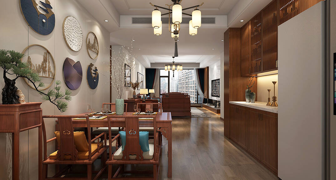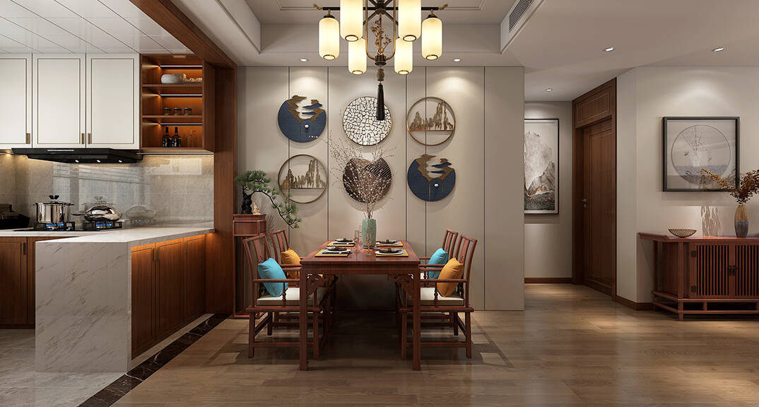 綠城·海棠印月131㎡三室一廳新中式餐廳風(fēng)格裝修效果圖