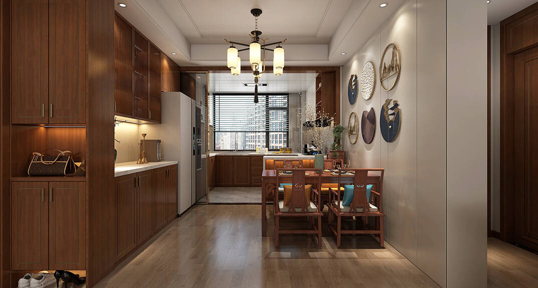綠城·海棠印月131㎡三室一廳餐廳廚房新中式風(fēng)格裝修效果圖