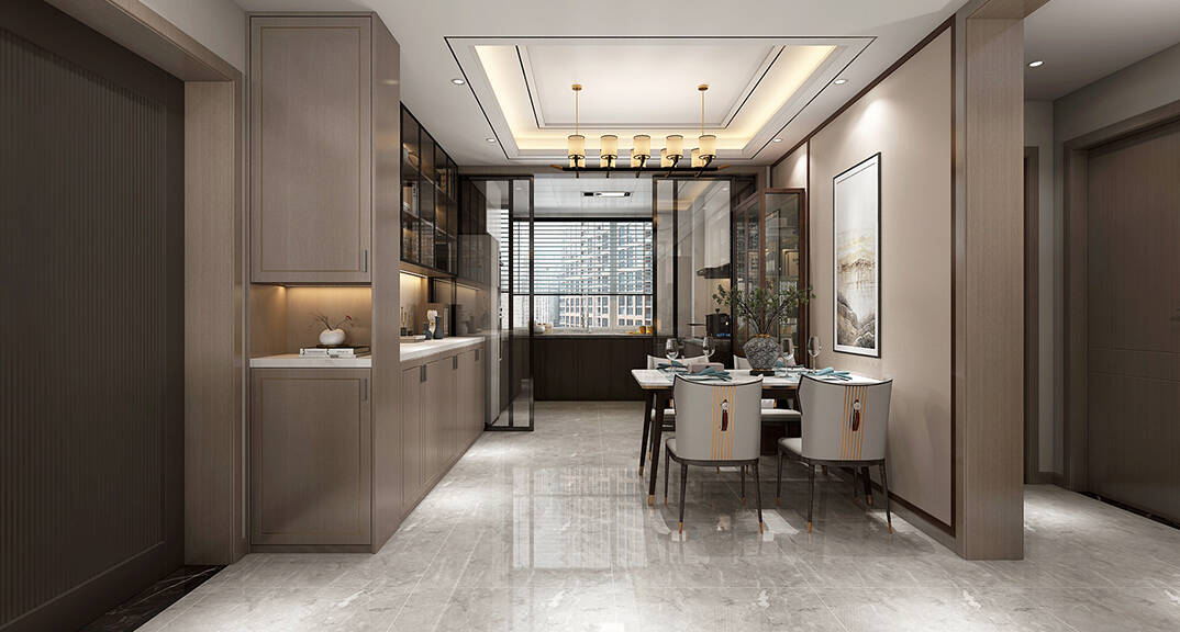 海棠印月131㎡三室一廳餐廳廚房新中式輕奢風(fēng)格裝修案例效果圖