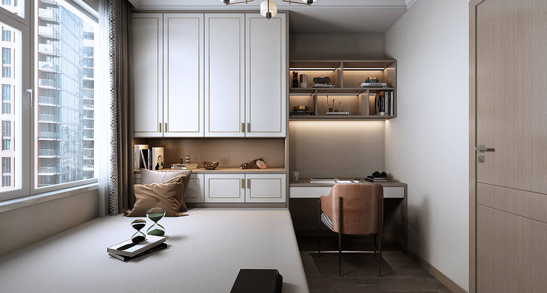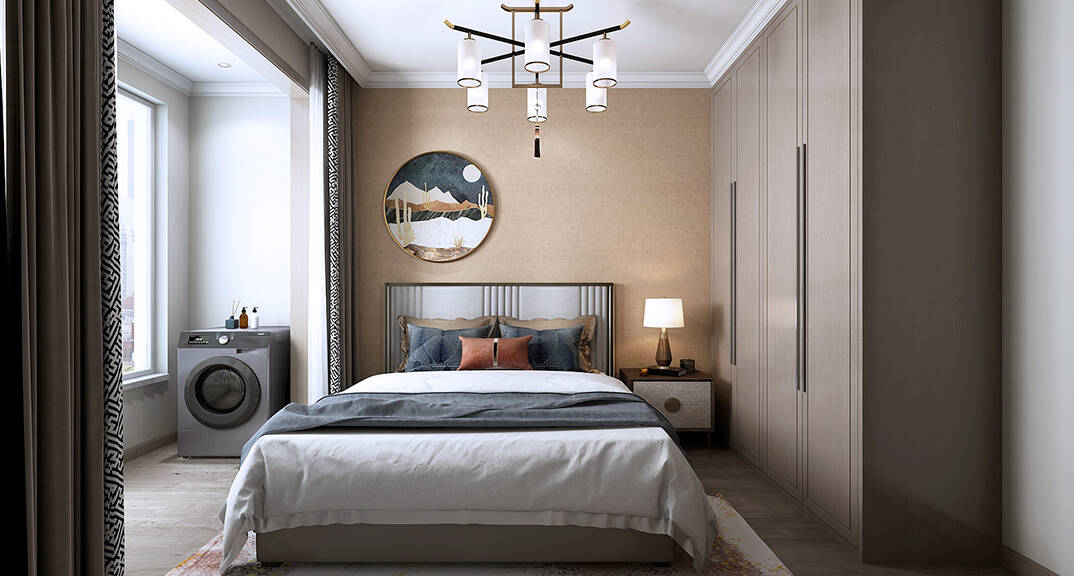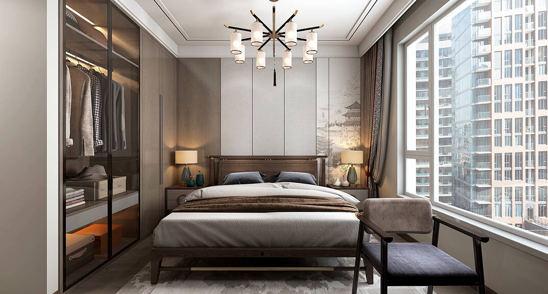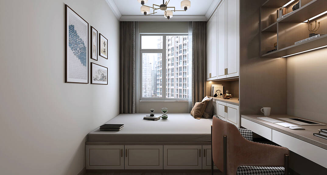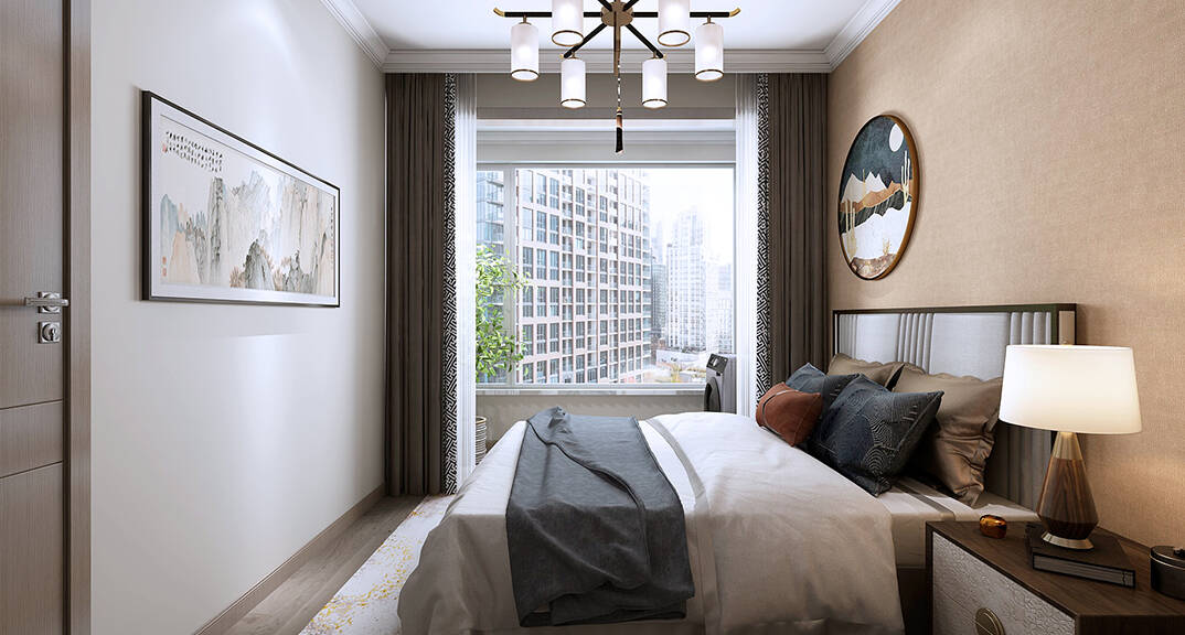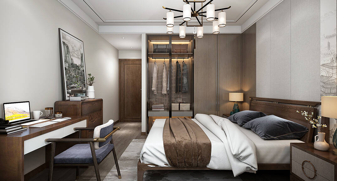海棠印月131㎡三室一廳次臥新中式輕奢風(fēng)格裝修案例效果圖
