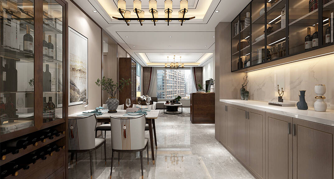 海棠印月131㎡三室一廳餐廳新中式輕奢風(fēng)格裝修案例效果圖