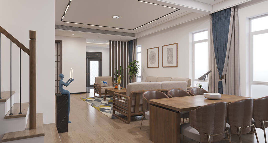 楓林小鎮(zhèn)160㎡聯(lián)排別墅新中式風(fēng)格裝修案例效果圖