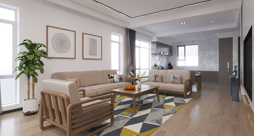 以現(xiàn)代風(fēng)格為主調(diào),主要色彩是米色、淺咖色、白色。在總體布局方面滿足寬敞明亮的需求,注重居室空間的布局與使用功能的完美結(jié)合。整體簡(jiǎn)約又不失設(shè)計(jì)感,開放式布局空間聯(lián)通,動(dòng)線流暢。客廳米灰色系的沙發(fā),造型簡(jiǎn)約,搭配材質(zhì)柔軟的軟裝,使客廳充滿閑話自在的空間氛圍。