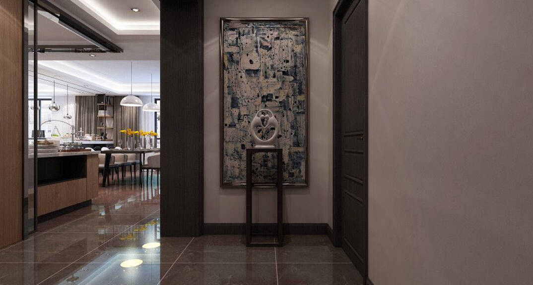 港式門廳和諧、舒適、現(xiàn)代感十足,背景墻面上的裝飾掛畫可以使墻面不至于過于的單調(diào),搭配同色的金屬家具及飾品,整體感覺時(shí)尚而又現(xiàn)代。