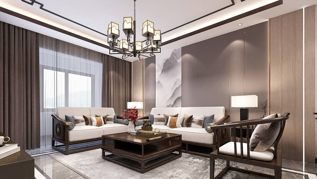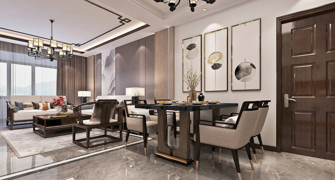 新中式裝飾風(fēng)格的住宅中,空間裝飾多采用簡(jiǎn)潔、硬朗的直線條,有些家庭還會(huì)采用具有西方工業(yè)設(shè)計(jì)色彩的板式家具與中式風(fēng)格的家具搭配使用。直線裝飾在空間中的使用,不僅反映出現(xiàn)代人追求簡(jiǎn)單生活的居住要求,更迎和了中式家居追求內(nèi)斂、質(zhì)樸的設(shè)計(jì)風(fēng)格,使中式風(fēng)格更加實(shí)用、更富現(xiàn)代感。