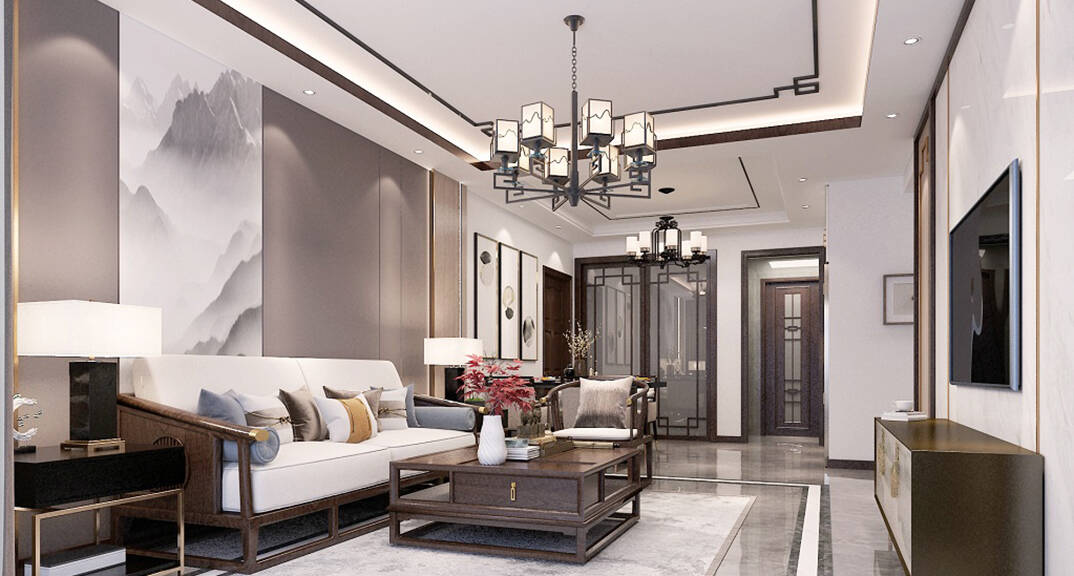 依山伴城127㎡三室兩廳客廳新中式風(fēng)格裝修案例效果圖