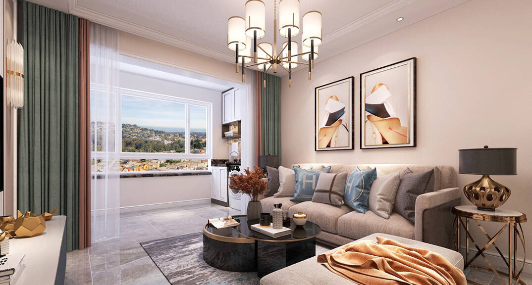 星雨華府103m2客廳輕奢風(fēng)格裝修案例效果圖