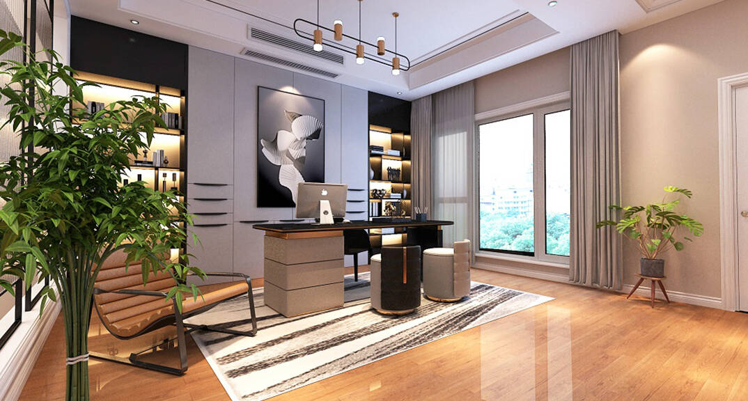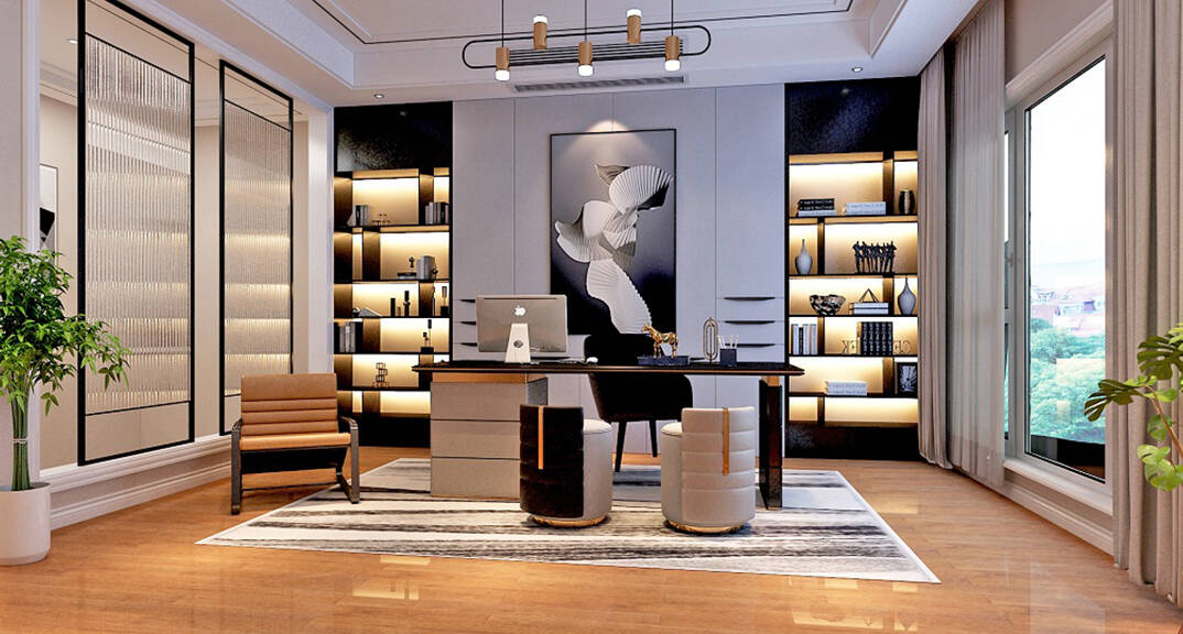 安納溪236m2別墅書(shū)房美式風(fēng)格裝修案例效果圖