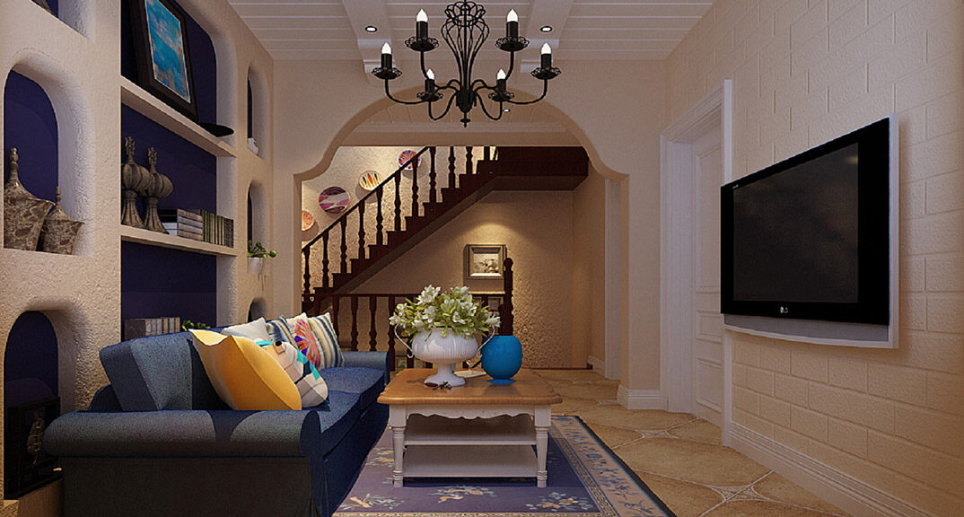 銀盛泰德郡220㎡別墅一客廳沙發(fā)新中式風(fēng)格裝修案例效果圖