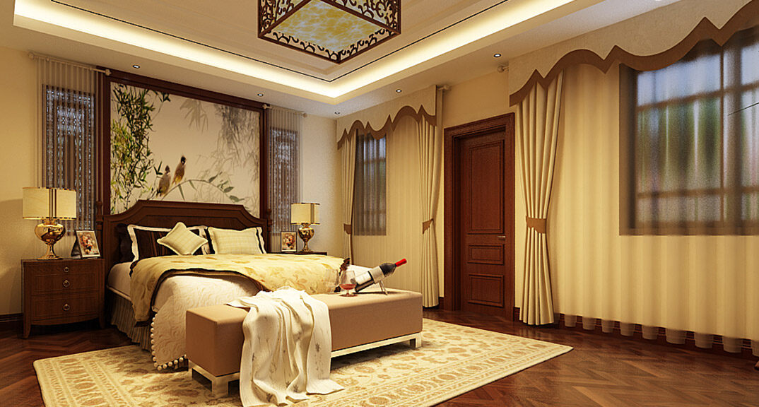 銀盛泰德郡220㎡別墅二層主臥新中式風(fēng)格裝修案例效果圖