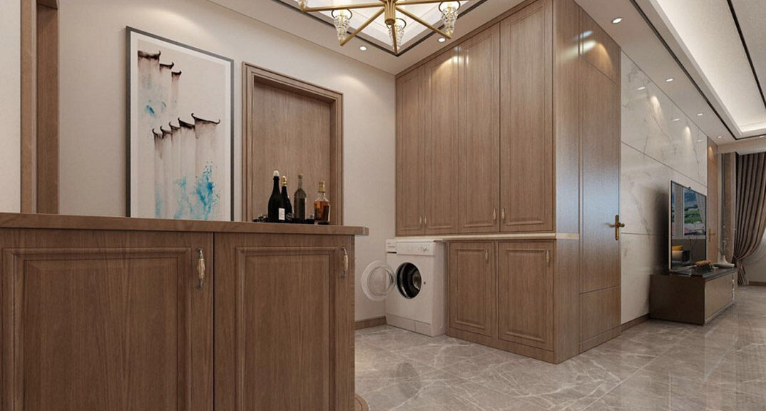 本案整體以現(xiàn)代中式風(fēng)格為主,既有現(xiàn)代風(fēng)格簡(jiǎn)約、明朗的線條,又有中國(guó)傳統(tǒng)內(nèi)涵與韻味。墻面大面積使用暖色烘托整體氛圍,融洽中式與現(xiàn)代簡(jiǎn)約兩種風(fēng)格??臻g更寬闊舒適玄關(guān)收納、玄關(guān)與干區(qū)相結(jié)合,既解放的外衛(wèi)的空間客廳電視背景是一面裝飾柜,豐富了空間,增加了收納和儲(chǔ)物,美觀又實(shí)用。
