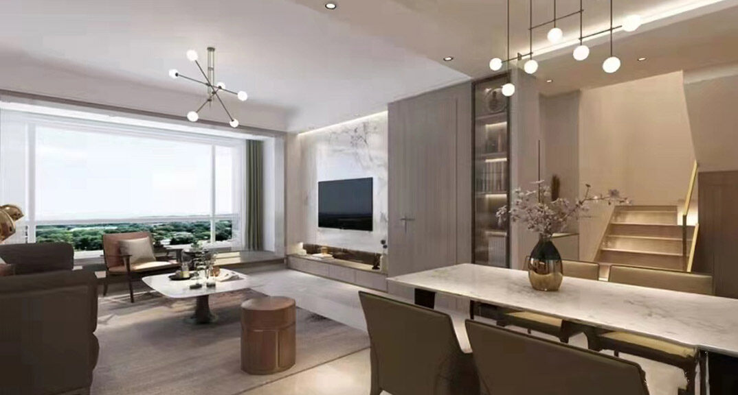 天一仁和瓏樾海115㎡別墅上疊客廳現(xiàn)代風格裝修案例效果圖
