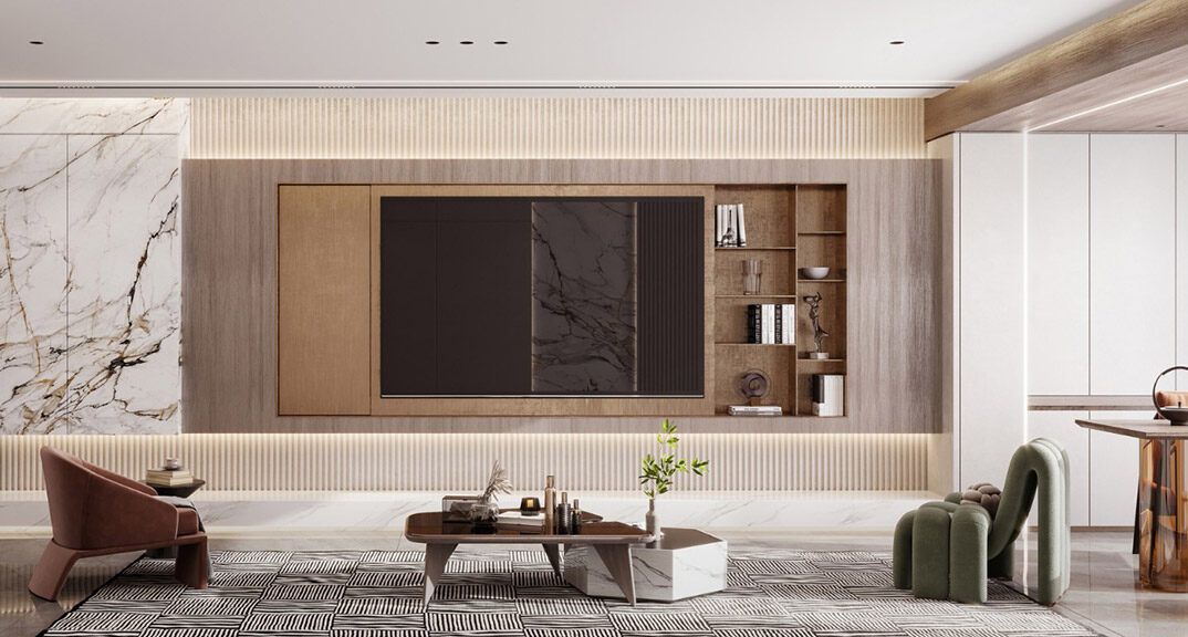 天一仁和瓏樾海115㎡三室兩廳兩衛(wèi)客廳現(xiàn)代簡約風(fēng)格裝修研發(fā)效果圖