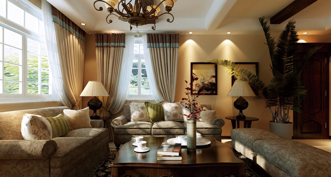 泓久花園212㎡別墅客廳沙發(fā)美式風(fēng)格裝修案例