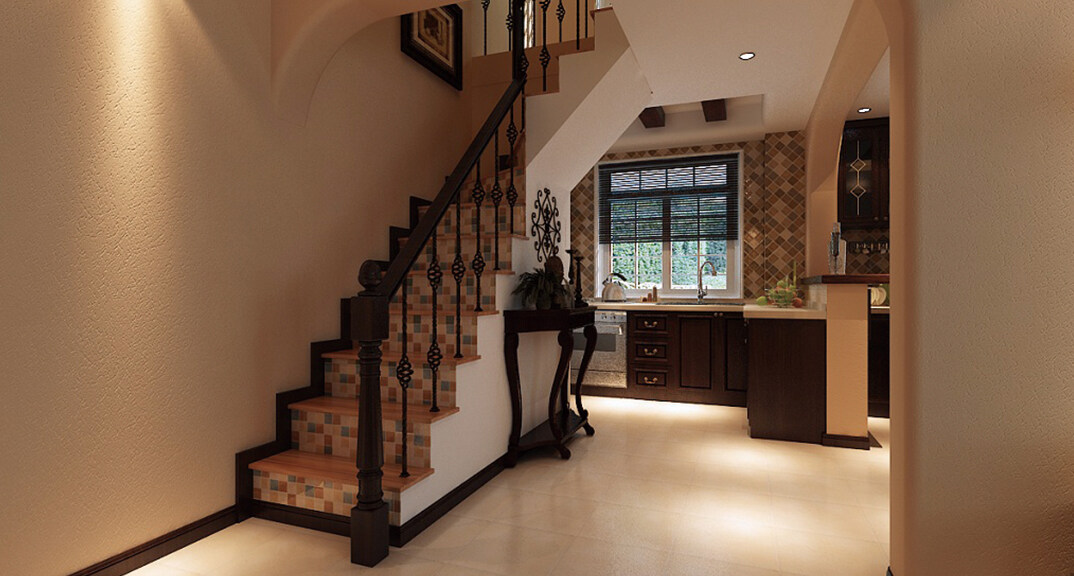 泓久花園212㎡別墅樓梯間美式風(fēng)格裝修案例.jpg