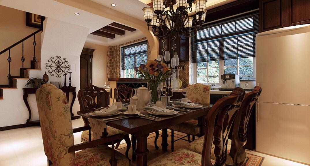 泓久花園212㎡別墅餐廳美式風(fēng)格裝修案例