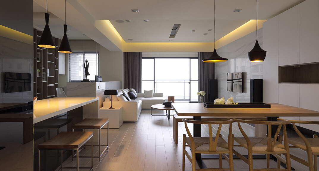 以簡(jiǎn)潔、清晰和功能性為特征的室內(nèi)設(shè)計(jì);它主要強(qiáng)調(diào)了空間的簡(jiǎn)化和精煉,追求線條簡(jiǎn)單、空間通透、色彩明亮、材質(zhì)自然等特點(diǎn),注重形式與功能的結(jié)合。他們希望有一個(gè)時(shí)尚、現(xiàn)代的功能性空間,在整個(gè)空間的設(shè)計(jì)上用了暖灰調(diào)來與簡(jiǎn)約的線條感來相呼應(yīng),能改造出一個(gè)通透、流暢的空間感。