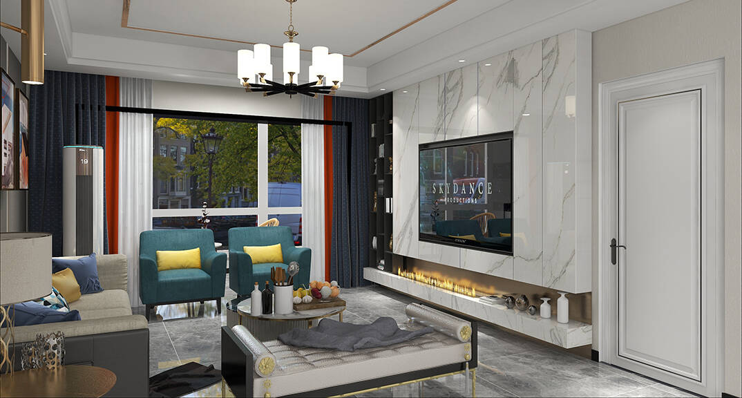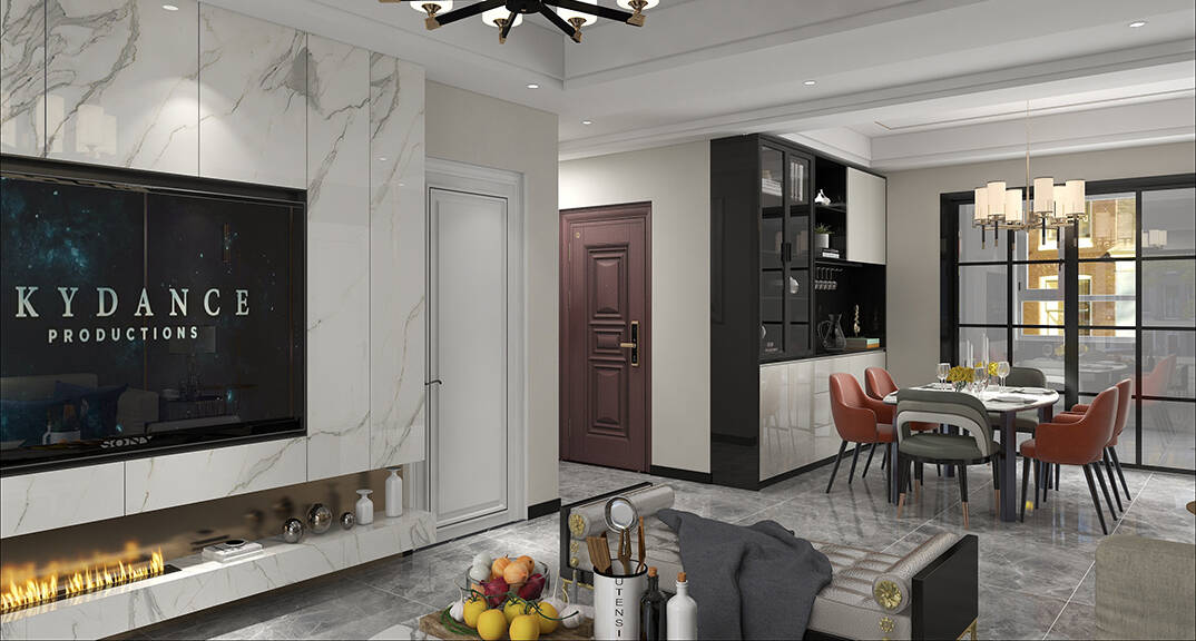 影都壹號127㎡三室兩廳意式輕奢風格裝修案例效果圖