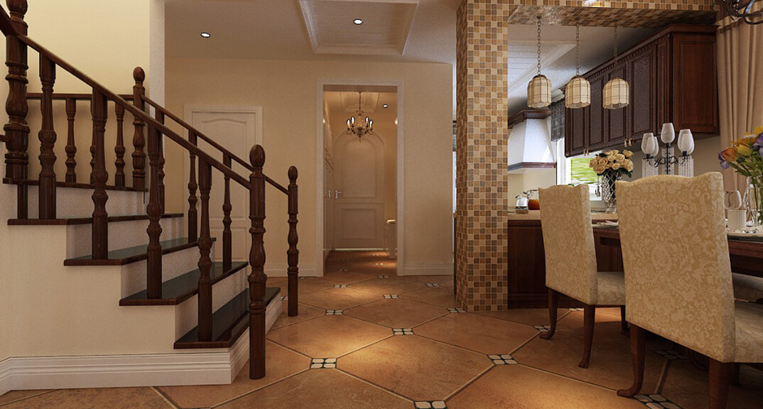 香溪庭院330㎡別墅樓梯間歐式田園風(fēng)格裝修案例效果圖
