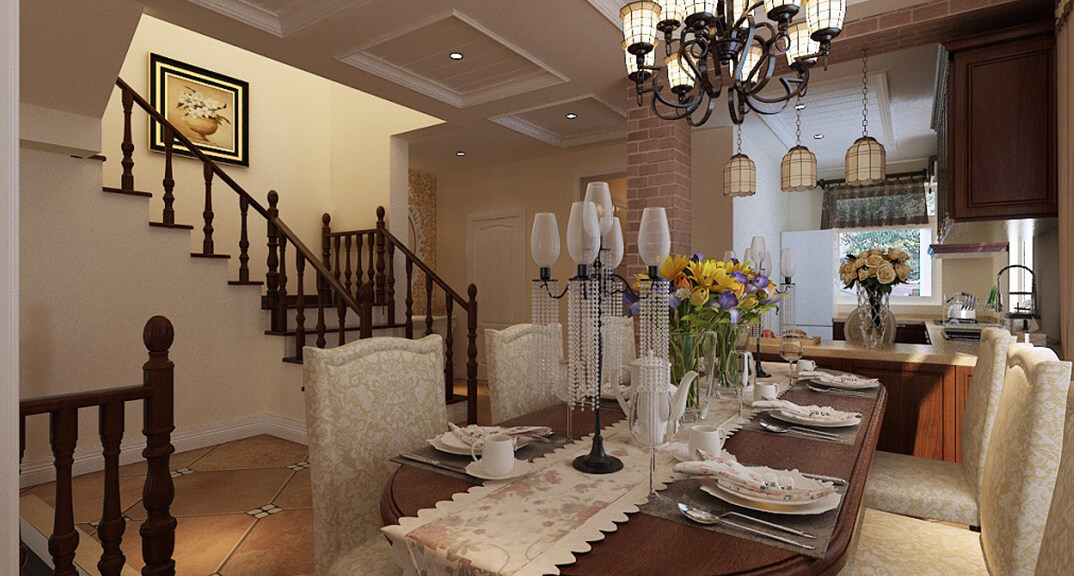 香溪庭院330㎡別墅樓梯餐廳電視歐式田園風(fēng)格裝修案例效果圖