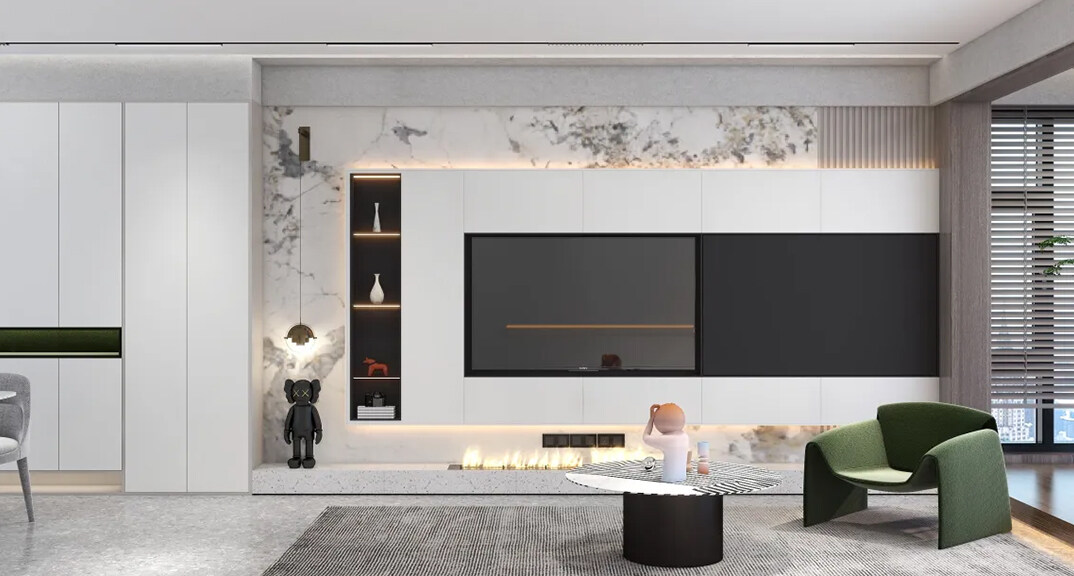 桃李芳菲126㎡三室一廳客廳電視現(xiàn)代簡約風(fēng)格裝修案例效果圖