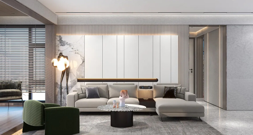 以簡潔、清晰和功能性為特征的室內(nèi)設(shè)計(jì);它主要強(qiáng)調(diào)了空間的簡化和精煉,追求線條簡單、空間通透、色彩明亮、材質(zhì)自然等特點(diǎn),注重形式與功能的結(jié)合。他們希望有一個(gè)時(shí)尚、現(xiàn)代的功能性空間,在整個(gè)空間的設(shè)計(jì)上用了暖灰調(diào)來與簡約的線條感來相呼應(yīng),能改造出一個(gè)通透、流暢的空間感。