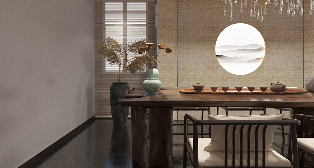 東海路700㎡獨(dú)棟別墅二層茶室新中式風(fēng)格裝修案例效果圖