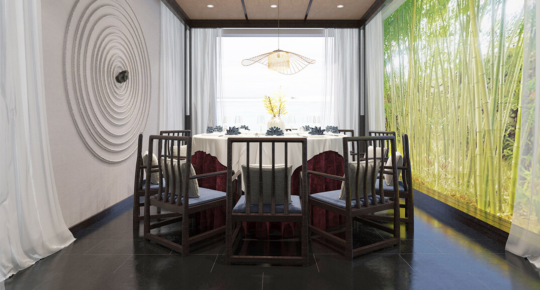 東海路700㎡獨(dú)棟別墅二層餐廳新中式風(fēng)格裝修案例效果圖