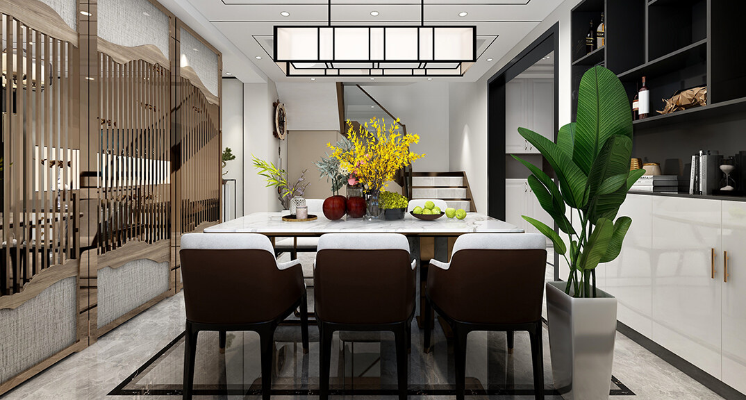 楓林小鎮(zhèn)160㎡聯(lián)排別墅餐廳新中式風格裝修案例效果圖