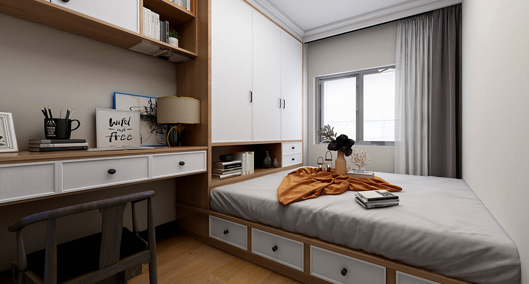 楓林小鎮(zhèn)160㎡聯(lián)排別墅次臥新中式風格裝修案例效果圖