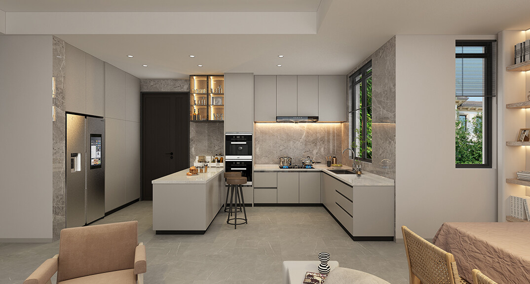 融創(chuàng)紅島壹號院207㎡別墅廚房侘寂風(fēng)格裝修案例效果圖