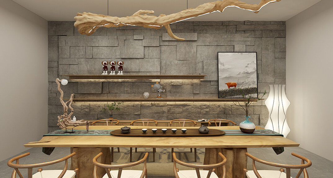 融創(chuàng)紅島壹號院207㎡別墅茶室侘寂風(fēng)格裝修案例效果圖
