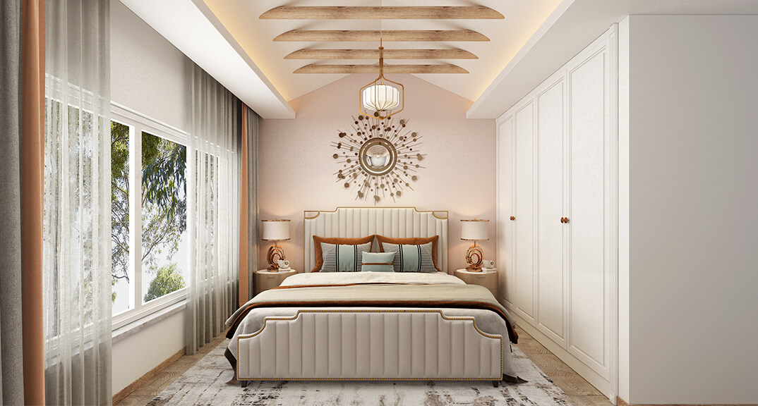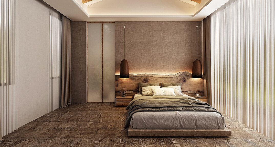 融創(chuàng)紅島壹號院207㎡別墅主臥侘寂風(fēng)格裝修案例效果圖