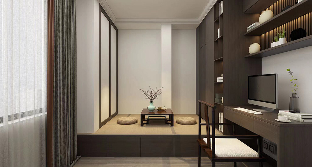 鑫江華府150㎡別墅上疊書(shū)房新中式風(fēng)格裝修案例效果圖